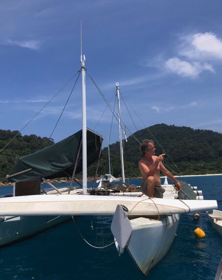The most extra ordinary story belongs to Glen, an American who sails a Wharram, i.e. a bare catamaran without engine, all the way from California. He graduated in Chemistry from University of California. Well educated and soft spoken, he realised very early on he neither fit well into the corporate norm nor thrive at the socialising with people. At 27, he built himself a 27ft Wharram and sailed around. He enjoyed the sailing, the solitude and the challenges so much that he, after a few years, went home and sold everything he owned and built another Wharram with 38ft. He sourced the right wood waited a year for them to dry properly before actually building the boat…everything by himself. He is definitely one of those “green” people and actually lives true to his motto. He has 2 solar panels to generate enough power for his mobile phones and GPS. He mainly cooks with a fire stove that uses dried coconut and wood. On top of the Wharram surface, there is no fixed structure so the boat is light but without much comfort. The 2 hulls are used for sleeping and storage. Since there is no engine, the single most important thing he needs is wind. 2 sails are built with maximum shape to increase speed which can achieve a top speed of 15 knots which is very fast! Of course, he has all the time in the world, so waiting for wind poses no issue for a man with no schedule.